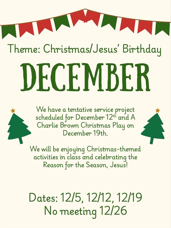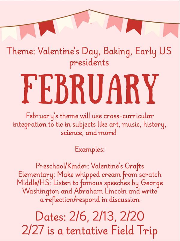 We offer classes for children aged 24 months through high school. When registering, please sign up every adult, child, and infant who will be attending the co-op.
